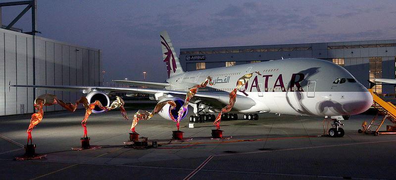 Photo from Qatar Airways of the brand new #QatarAirways Airbus A380 at the #Hamburg Delivery Center.