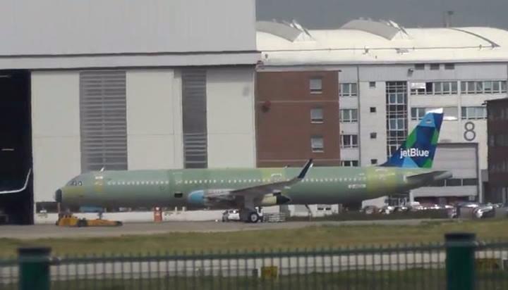 A recent photo showing JetBlue's first A321. I think it is painted now though at the moment.